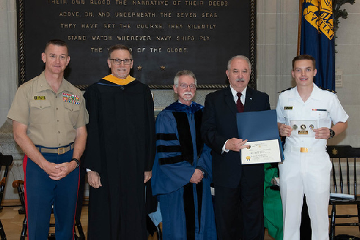 The 2022 Award was given to MIDN 2/C Nels Waaraneimi on 25 May 2022. This is a joint John Paul Jones Chapter/US Naval Academy History Department award given out to an outstanding Midshipman who has done something special during his/her time at the Academy. MIDN 2/C Waaraneimi helped develop The Life at the Academy podcast team, and the process by which they interviewed alumni and officers as well as current and retired faculty in examining culture, traditions and daily life of midshipmen as it has evolved over time and turning those interviews into a series of oral history podcast that will be held in the Nimitz library for posterity, and the study of the history of the Naval Academy.